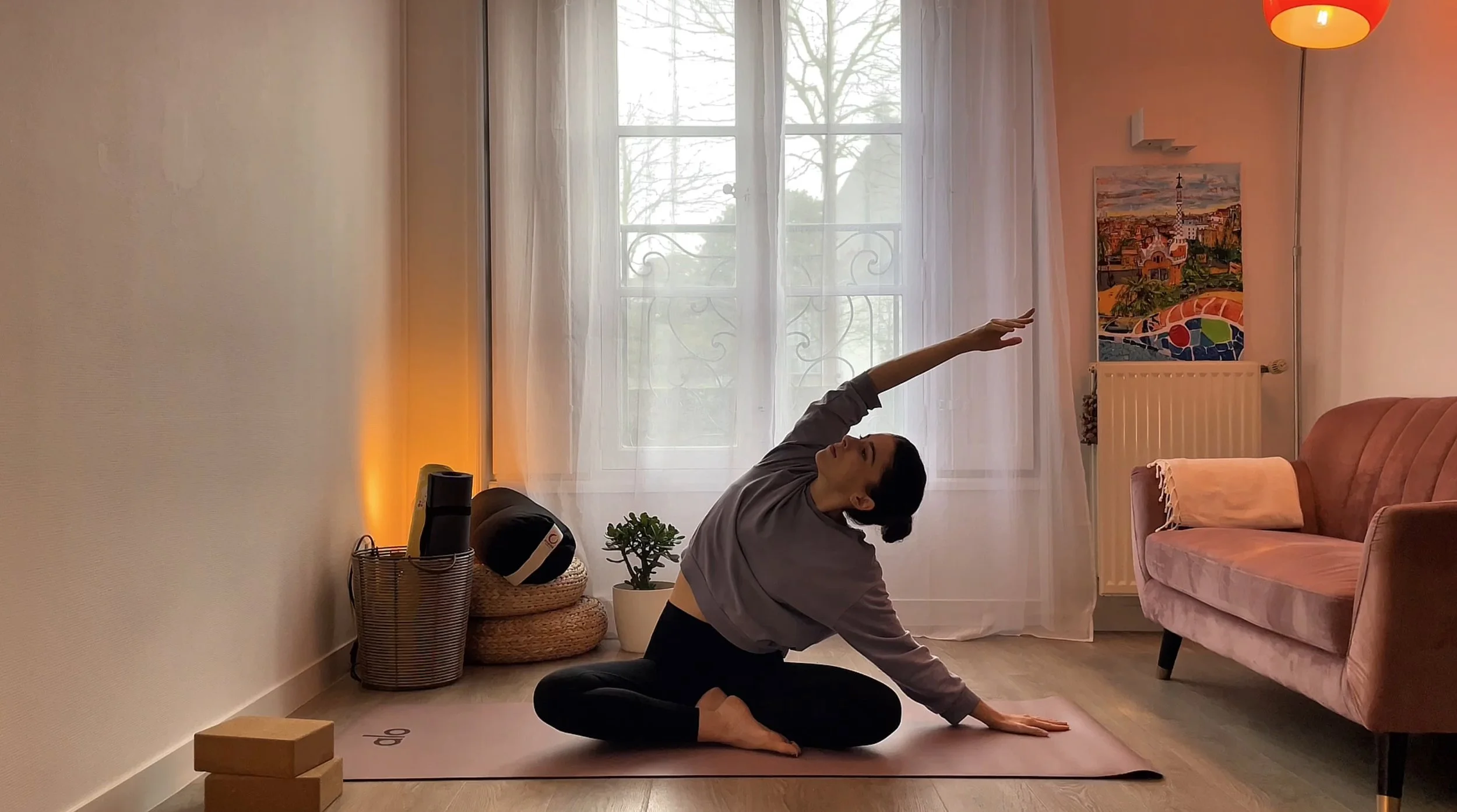 Tu trouveras des cours de yoga doux, de vinyasa, yin yoga et des séances de sophrologie.